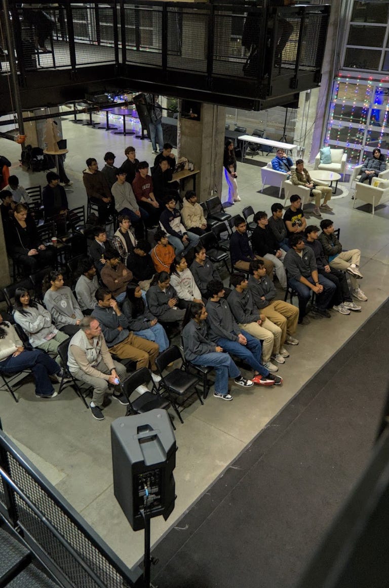In December we had our fall 2025 summit where we recapped everything that happened last semester, including our projects, hackathons, and workshops. We also had a guest speaker, Arnaldo Tavares, talk about his experience in AI.